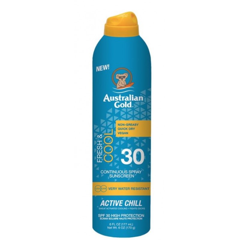 Australian Gold Active Chill SPF30 Continuous Spray Sunscreen, 237 ml.